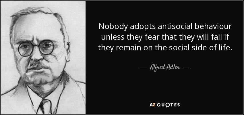 Nobody adopts antisocial behaviour unless they fear that they will fail if they remain on the social side of life.