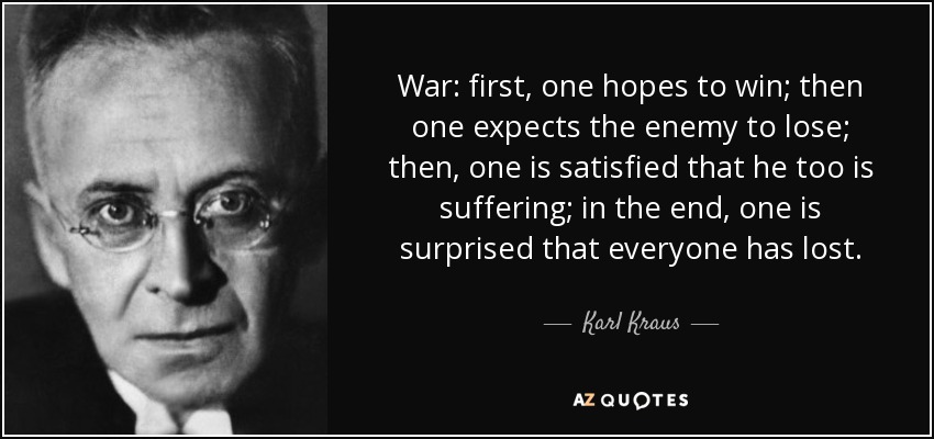 War: first, one hopes to win; then one expects the enemy to lose; then, one is satisfied that he too is suffering; in the end, one is surprised that everyone has lost.