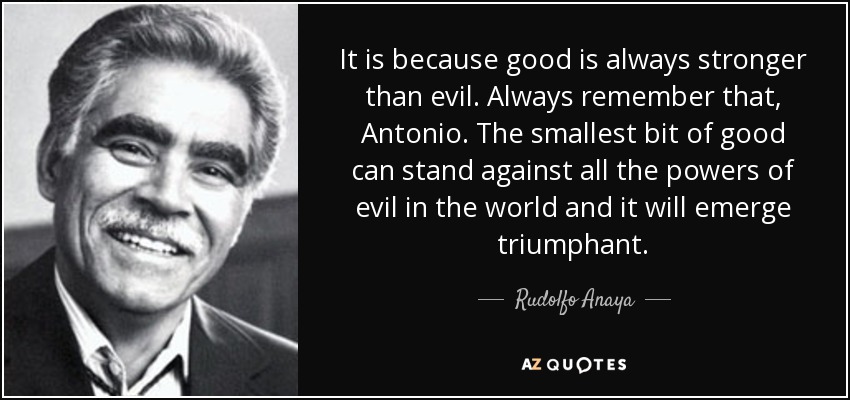 It is because good is always stronger than evil. Always remember that, Antonio. The smallest bit of good can stand against all the powers of evil in the world and it will emerge triumphant.