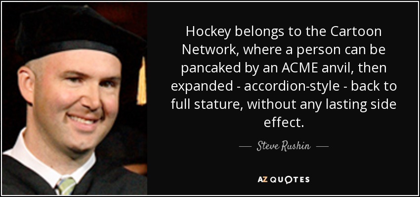 Hockey belongs to the Cartoon Network, where a person can be pancaked by an ACME anvil, then expanded - accordion-style - back to full stature, without any lasting side effect.