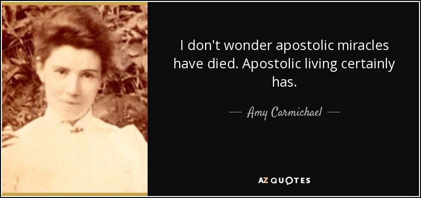 We profess to be strangers and pilgrims, seeking after a country of our own, yet we settle down in the most un-stranger-like fashion, exactly as if we were quite at home and meant to stay as long as we could. I don't wonder apostolic miracles have died. Apostolic living certainly has.