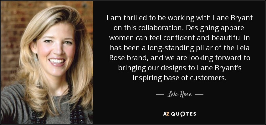 I am thrilled to be working with Lane Bryant on this collaboration. Designing apparel women can feel confident and beautiful in has been a long-standing pillar of the Lela Rose brand, and we are looking forward to bringing our designs to Lane Bryant's inspiring base of customers.
