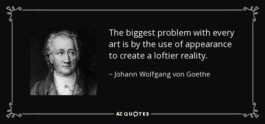 The biggest problem with every art is by the use of appearance to create a loftier reality.