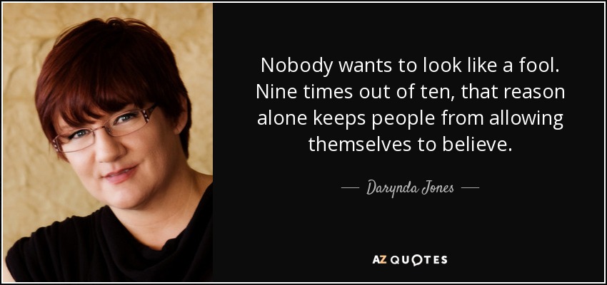 Nobody wants to look like a fool. Nine times out of ten, that reason alone keeps people from allowing themselves to believe.