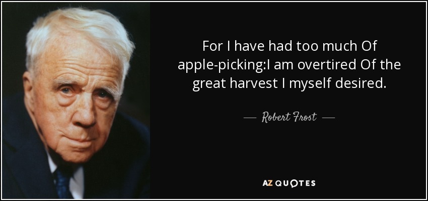 For I have had too much Of apple-picking:I am overtired Of the great harvest I myself desired.