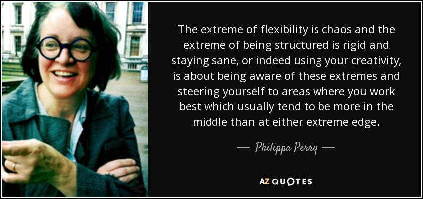 The extreme of flexibility is chaos and the extreme of being structured is rigid and staying sane, or indeed using your creativity, is about being aware of these extremes and steering yourself to areas where you work best which usually tend to be more in the middle than at either extreme edge.