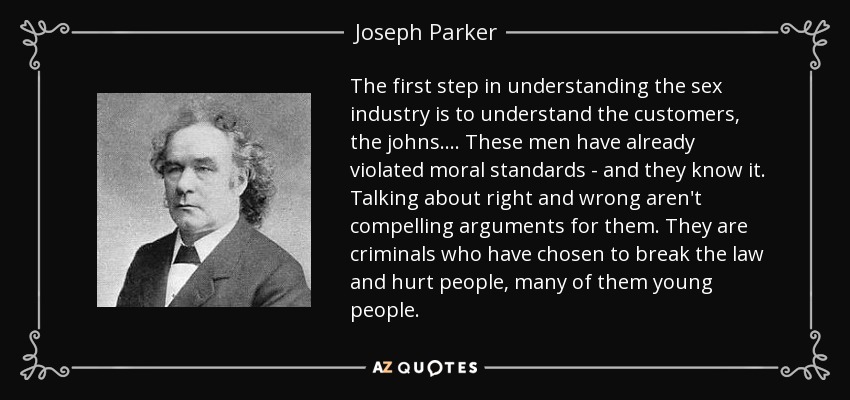 The first step in understanding the sex industry is to understand the customers, the johns. ... These men have already violated moral standards - and they know it. Talking about right and wrong aren't compelling arguments for them. They are criminals who have chosen to break the law and hurt people, many of them young people.
