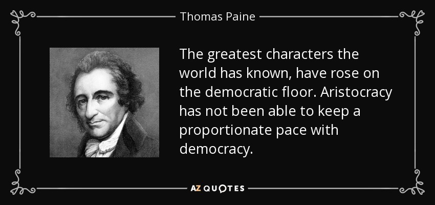 The greatest characters the world has known, have rose on the democratic floor. Aristocracy has not been able to keep a proportionate pace with democracy.