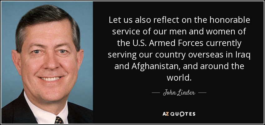Let us also reflect on the honorable service of our men and women of the U.S. Armed Forces currently serving our country overseas in Iraq and Afghanistan, and around the world.