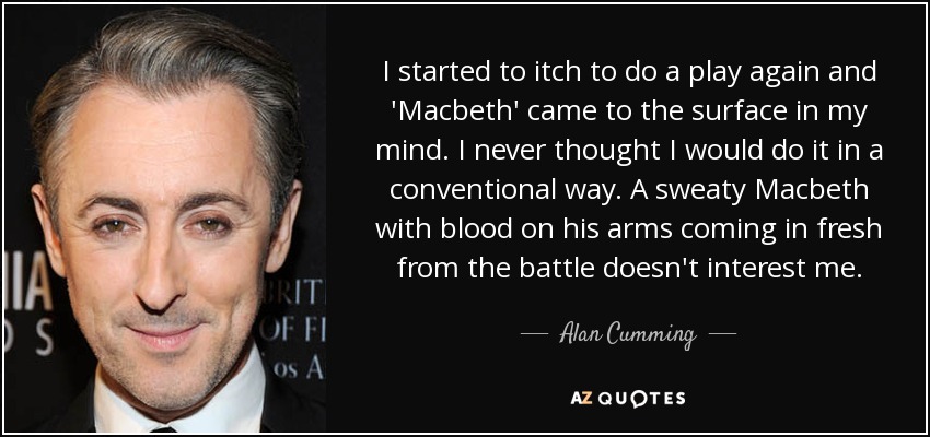 I started to itch to do a play again and 'Macbeth' came to the surface in my mind. I never thought I would do it in a conventional way. A sweaty Macbeth with blood on his arms coming in fresh from the battle doesn't interest me.