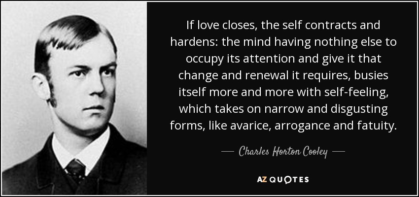 If love closes, the self contracts and hardens: the mind having nothing else to occupy its attention and give it that change and renewal it requires, busies itself more and more with self-feeling, which takes on narrow and disgusting forms, like avarice, arrogance and fatuity.