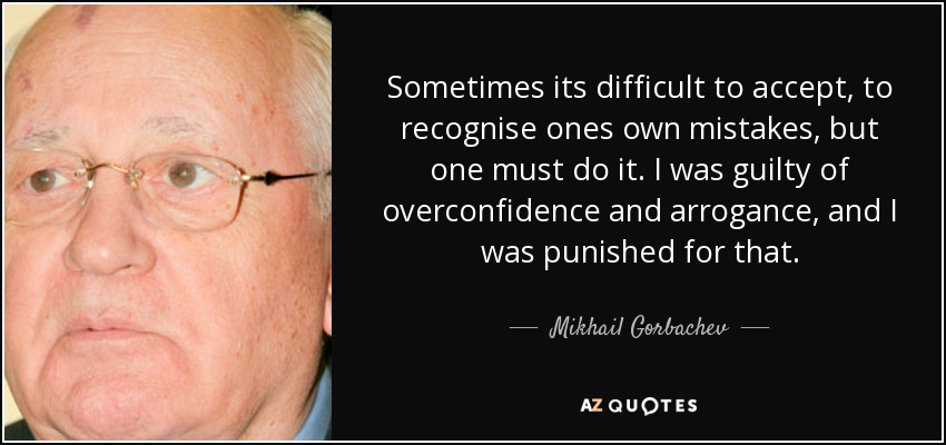Sometimes its difficult to accept, to recognise ones own mistakes, but one must do it. I was guilty of overconfidence and arrogance, and I was punished for that.