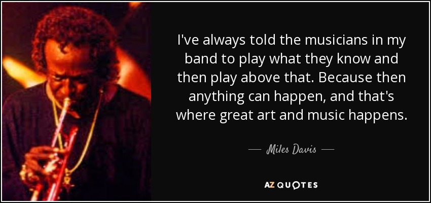 I've always told the musicians in my band to play what they know and then play above that. Because then anything can happen, and that's where great art and music happens.