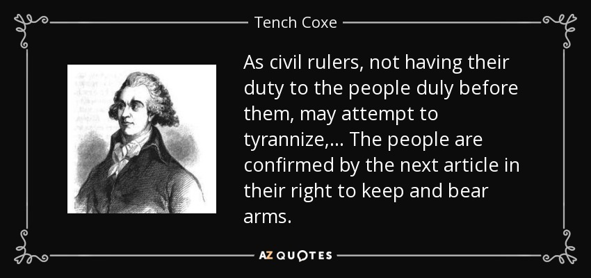 As civil rulers, not having their duty to the people duly before them, may attempt to tyrannize,... The people are confirmed by the next article in their right to keep and bear arms.