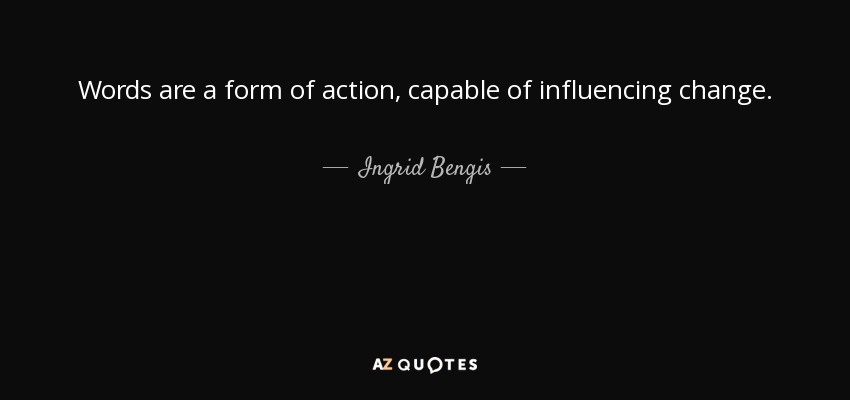 For me words still possess their primitive, mystical, incantatory powers. I am inclined to use them as part of an attempt to make my own reality more real for others, as part of an effort to transcend emotional danger. For me, words are a form of action, capable of influencing change. Their articulation represents a complete, lived experience.