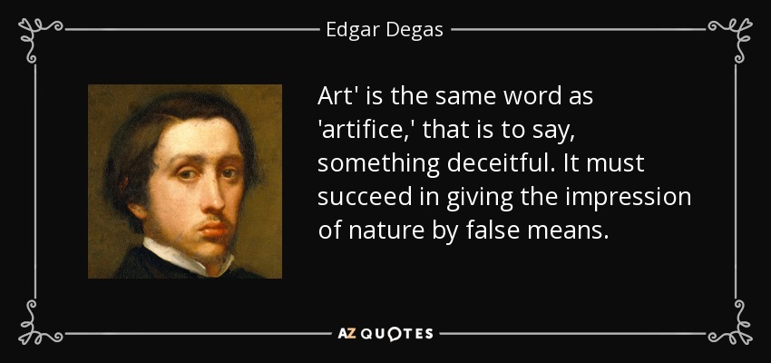 Art' is the same word as 'artifice,' that is to say, something deceitful. It must succeed in giving the impression of nature by false means.