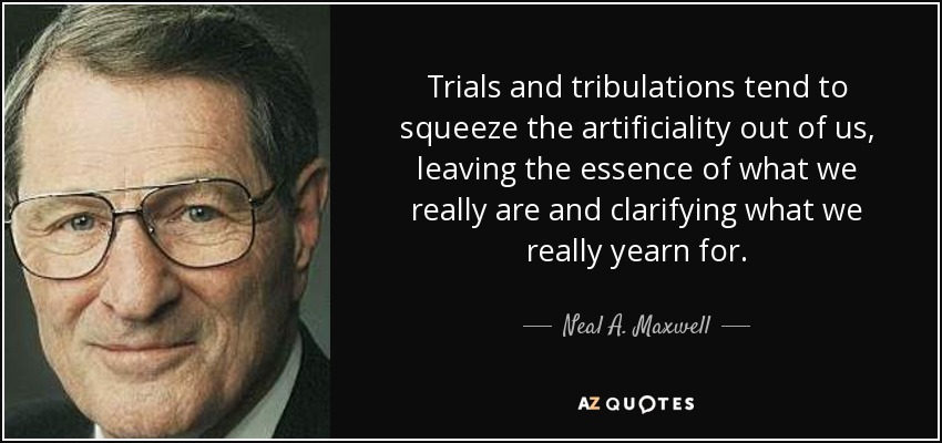 Trials and tribulations tend to squeeze the artificiality out of us, leaving the essence of what we really are and clarifying what we really yearn for.