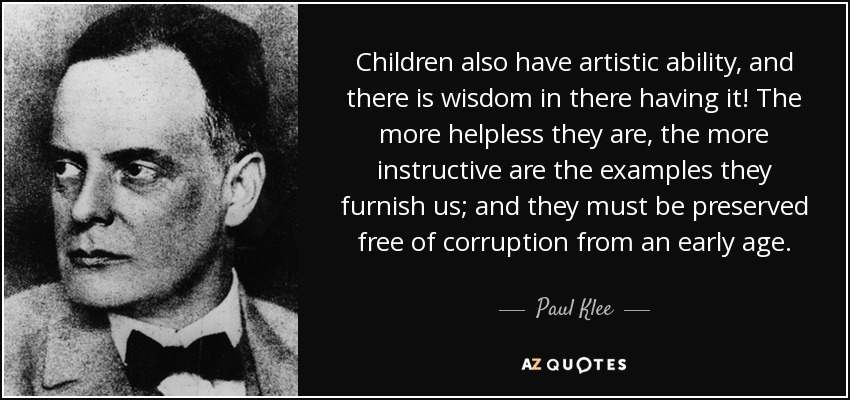 Children also have artistic ability, and there is wisdom in there having it! The more helpless they are, the more instructive are the examples they furnish us; and they must be preserved free of corruption from an early age.