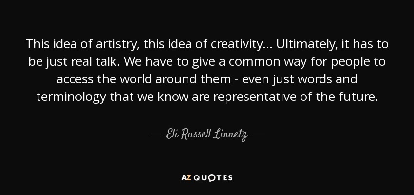 This idea of artistry, this idea of creativity... Ultimately, it has to be just real talk. We have to give a common way for people to access the world around them - even just words and terminology that we know are representative of the future.