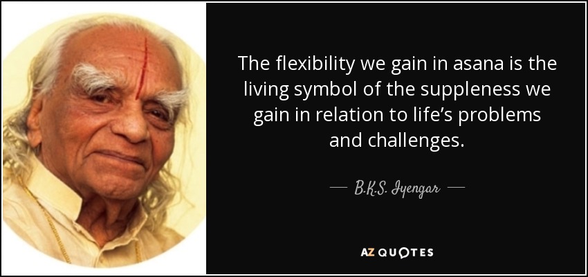 The flexibility we gain in asana is the living symbol of the suppleness we gain in relation to life’s problems and challenges.