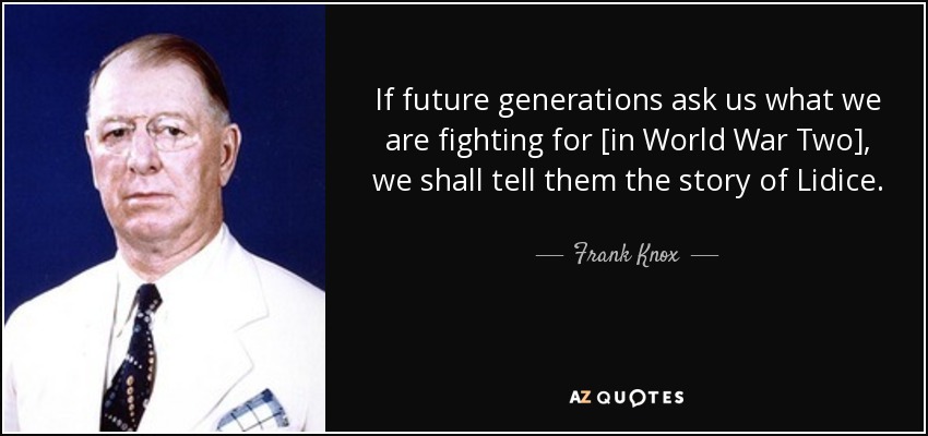 If future generations ask us what we are fighting for [in World War Two], we shall tell them the story of Lidice.