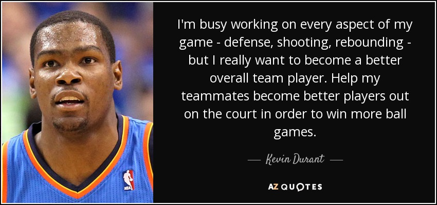 I'm busy working on every aspect of my game - defense, shooting, rebounding - but I really want to become a better overall team player. Help my teammates become better players out on the court in order to win more ball games.