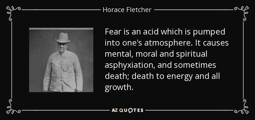 Fear is an acid which is pumped into one's atmosphere. It causes mental, moral and spiritual asphyxiation, and sometimes death; death to energy and all growth.