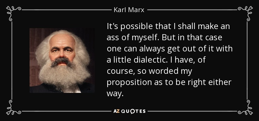 It's possible that I shall make an ass of myself. But in that case one can always get out of it with a little dialectic. I have, of course, so worded my proposition as to be right either way.