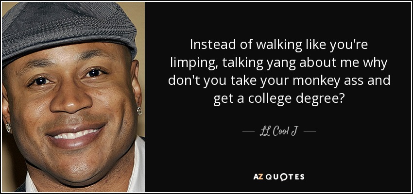 Instead of walking like you're limping, talking yang about me why don't you take your monkey ass and get a college degree?