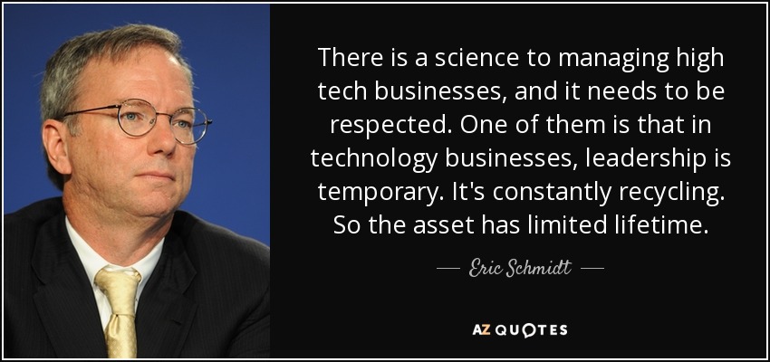 There is a science to managing high tech businesses, and it needs to be respected. One of them is that in technology businesses, leadership is temporary. It's constantly recycling. So the asset has limited lifetime.