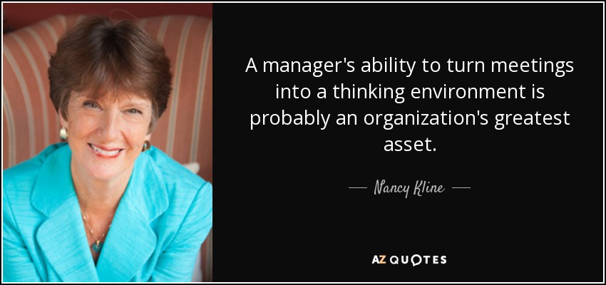 A manager's ability to turn meetings into a thinking environment is probably an organization's greatest asset.