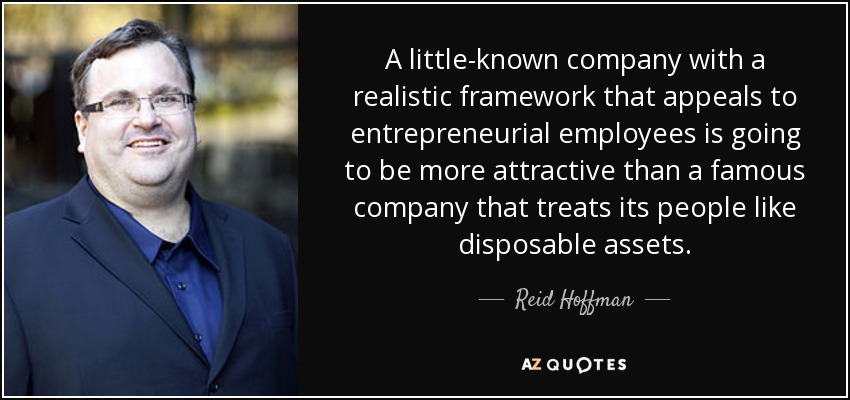 A little-known company with a realistic framework that appeals to entrepreneurial employees is going to be more attractive than a famous company that treats its people like disposable assets.