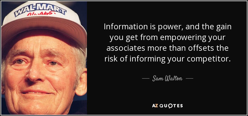 Information is power, and the gain you get from empowering your associates more than offsets the risk of informing your competitor.