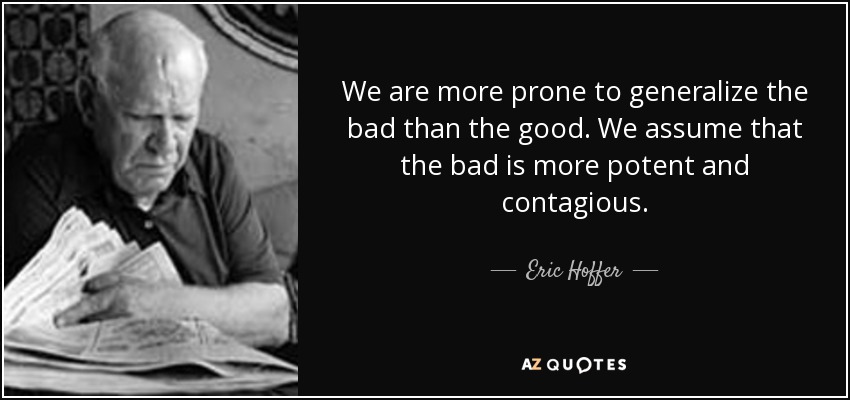 We are more prone to generalize the bad than the good. We assume that the bad is more potent and contagious.