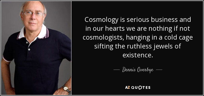 Cosmology is serious business and in our hearts we are nothing if not cosmologists, hanging in a cold cage sifting the ruthless jewels of existence.
