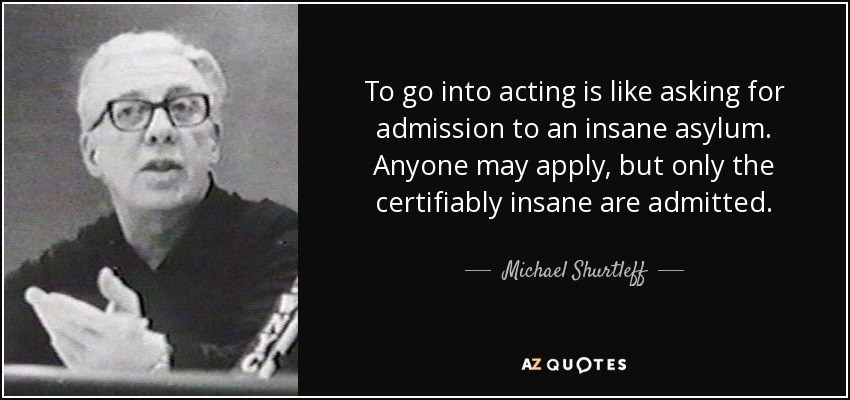 To go into acting is like asking for admission to an insane asylum. Anyone may apply, but only the certifiably insane are admitted.