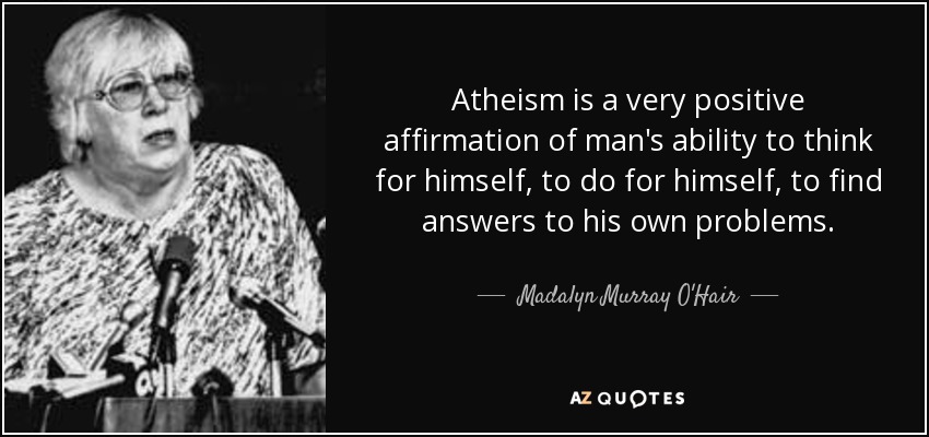 Atheism is a very positive affirmation of man's ability to think for himself, to do for himself, to find answers to his own problems.