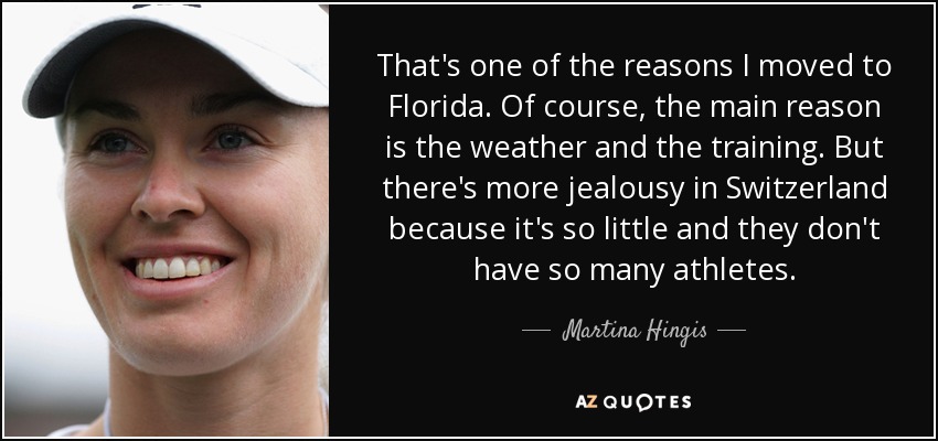That's one of the reasons I moved to Florida. Of course, the main reason is the weather and the training. But there's more jealousy in Switzerland because it's so little and they don't have so many athletes.