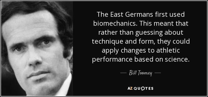 The East Germans first used biomechanics. This meant that rather than guessing about technique and form, they could apply changes to athletic performance based on science.