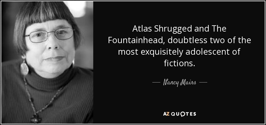 Atlas Shrugged and The Fountainhead, doubtless two of the most exquisitely adolescent of fictions.