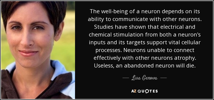 The well-being of a neuron depends on its ability to communicate with other neurons. Studies have shown that electrical and chemical stimulation from both a neuron's inputs and its targets support vital cellular processes. Neurons unable to connect effectively with other neurons atrophy. Useless, an abandoned neuron will die.