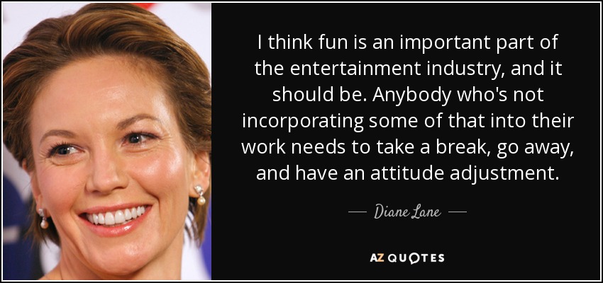 I think fun is an important part of the entertainment industry, and it should be. Anybody who's not incorporating some of that into their work needs to take a break, go away, and have an attitude adjustment.