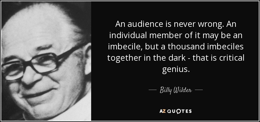 An audience is never wrong. An individual member of it may be an imbecile, but a thousand imbeciles together in the dark - that is critical genius.
