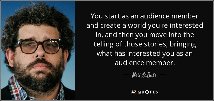 You start as an audience member and create a world you're interested in, and then you move into the telling of those stories, bringing what has interested you as an audience member.