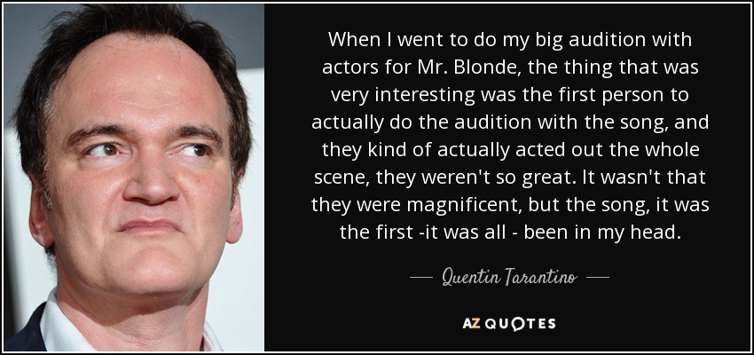 When I went to do my big audition with actors for Mr. Blonde, the thing that was very interesting was the first person to actually do the audition with the song, and they kind of actually acted out the whole scene, they weren't so great. It wasn't that they were magnificent, but the song, it was the first -it was all - been in my head.