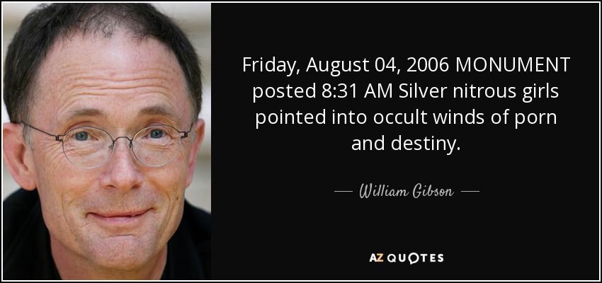 Friday, August 04, 2006 MONUMENT posted 8:31 AM Silver nitrous girls pointed into occult winds of porn and destiny.