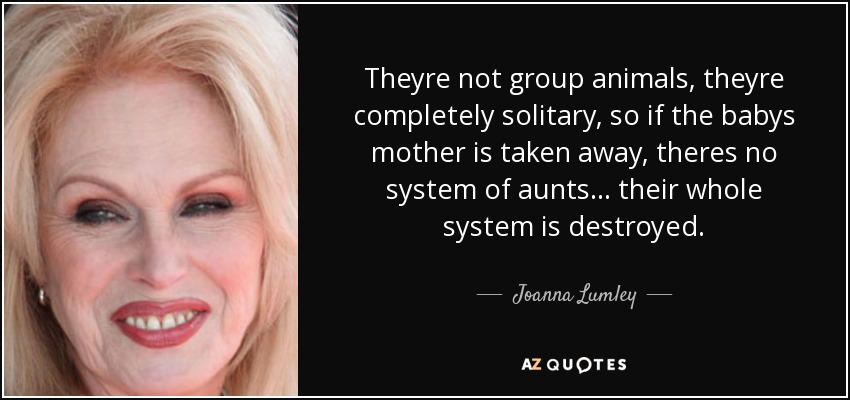 Theyre not group animals, theyre completely solitary, so if the babys mother is taken away, theres no system of aunts ... their whole system is destroyed.