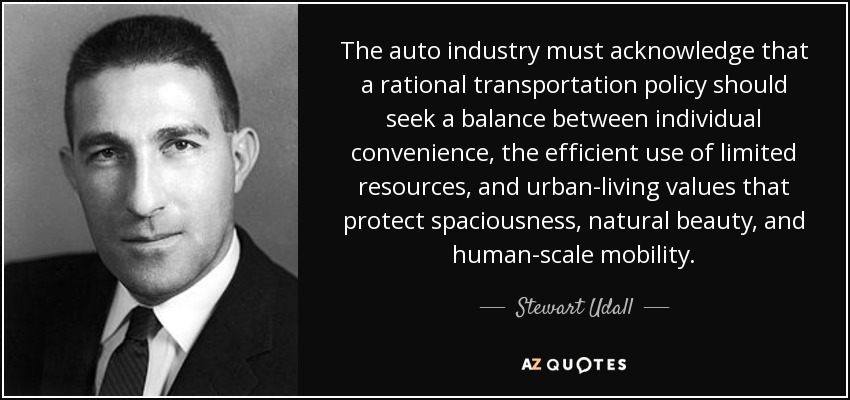 The auto industry must acknowledge that a rational transportation policy should seek a balance between individual convenience, the efficient use of limited resources, and urban-living values that protect spaciousness, natural beauty, and human-scale mobility.