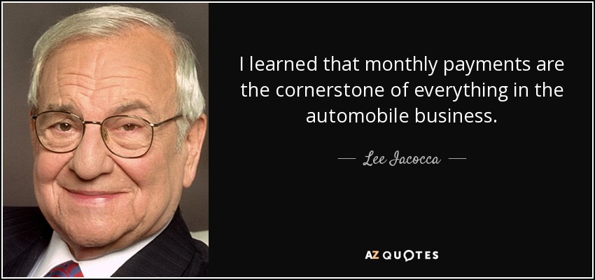 I learned that monthly payments are the cornerstone of everything in the automobile business.