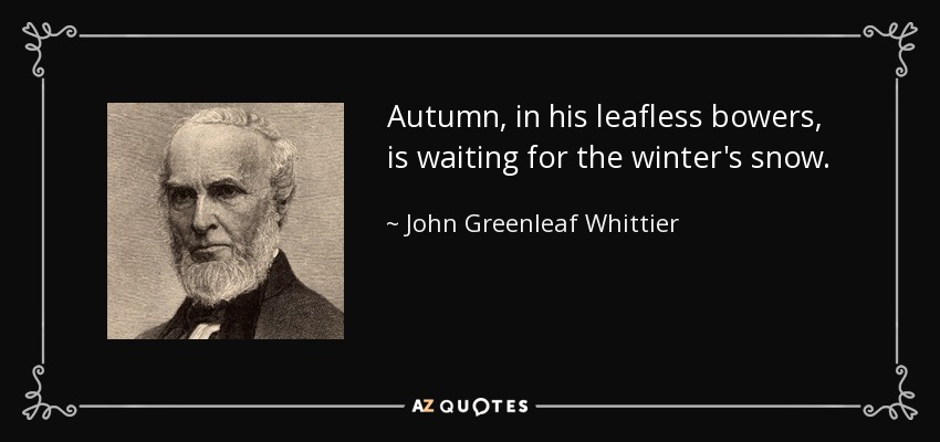 Autumn, in his leafless bowers, is waiting for the winter's snow.